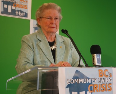 - BC Family Net President Anita Dadson, one of the parents who pioneered BC’s community living movement, speaks in April 2011 at the launch of the BC-CLAG report recommending sweeping changes to address the growing crisis in BC’s community living sector.