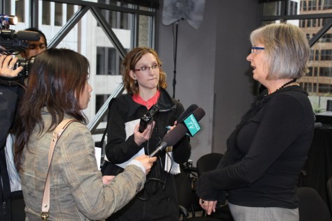 BCACL Executive Director and BC-CLAG member Faith Bodnar addresses media after CLBC funding announcement